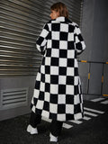 This stunning coat features a bold black-and-white plaid pattern that instantly elevates your outfit, giving you that confident, “model-off-duty” look. Designed with a classic collar, long sleeves, and a button-front closure, it brings sophistication to your casual wardrobe while keeping you cozy on chilly fall and winter days.