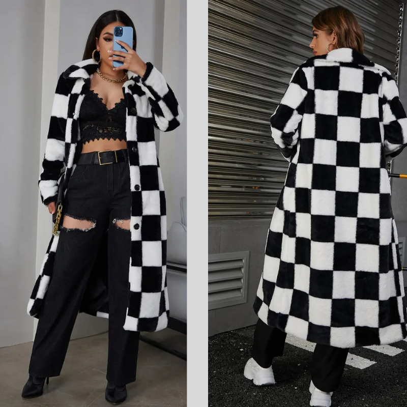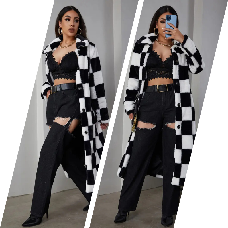 🛍️ Add it to your cart now and experience the charm, warmth, and luxury of this plaid faux fur coat — because you deserve to shine, even in the cold.